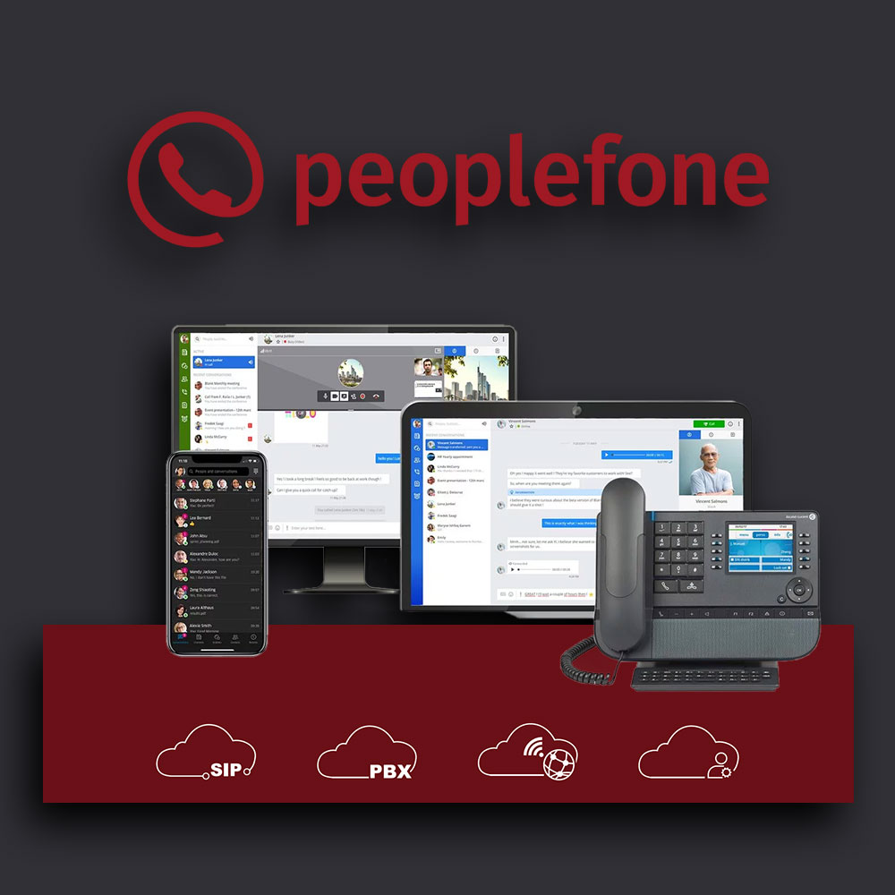 kommunikation, diese ist skalierbar, sicher und vor allem preiswert. Setzen Sie sich nicht nur auf Telefonie, sondern kommunizieren Sie über Livechat, Facebook Messenger, SMS und Videokonferenzen. All das über einen einzigen Client, sodass Sie nicht zwischen verschiedenen Anwendungen wechseln müssen. Wählen Sie zwischen Webclient, Desktop App oder mobilen Clients oder schließen Sie einfach ein unterstütztes IP-Telefon an.